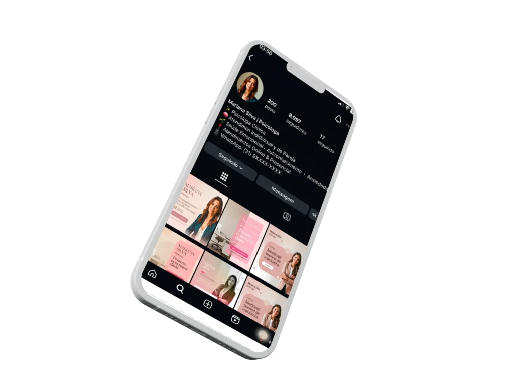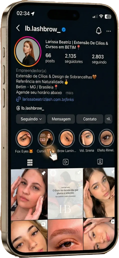 Lá você acompanha trabalhos reais, bastidores do estúdio e a naturalidade aplicada na prática.